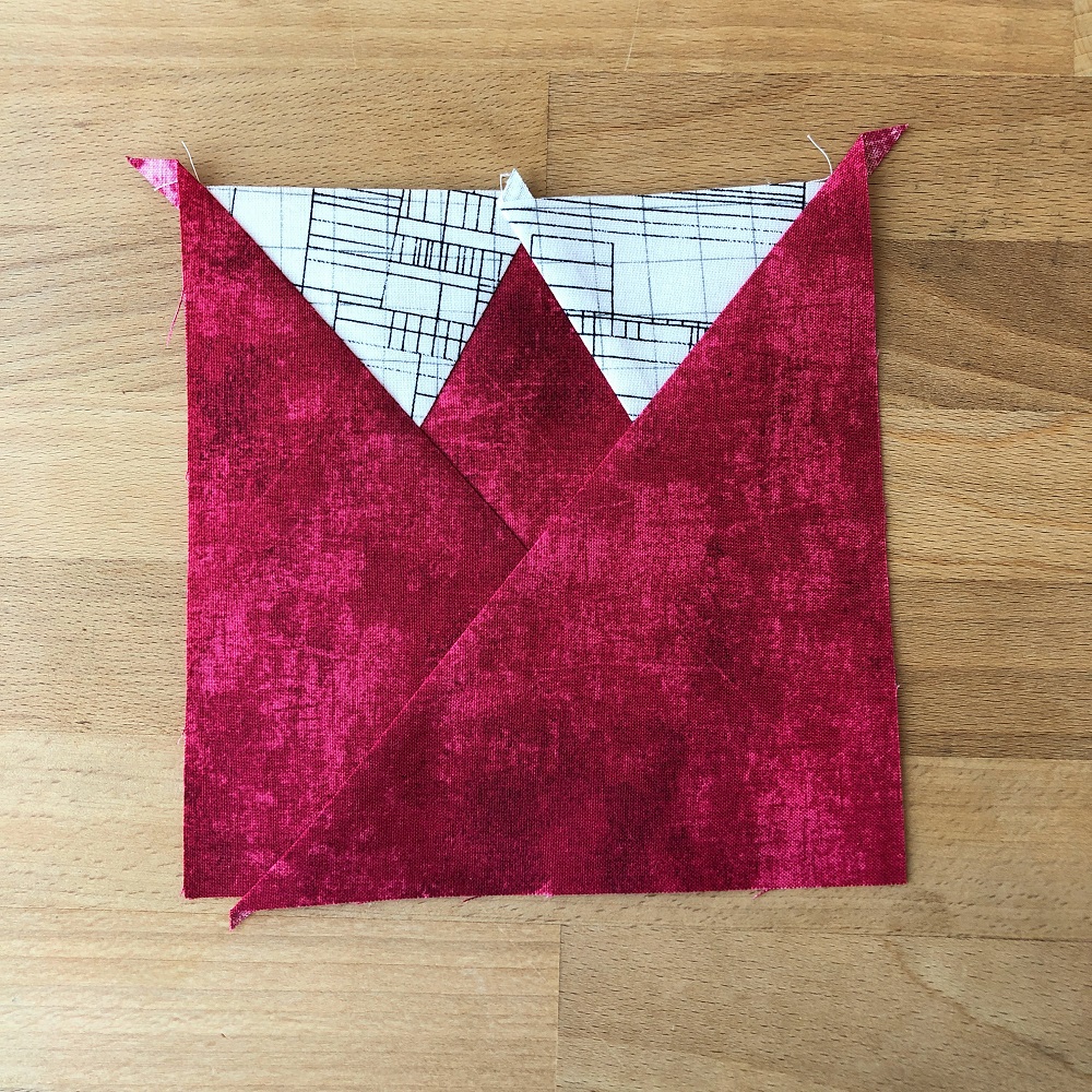 - Trim your “3” piece at 1/4″ from the seam and press your “3” piece to the side.