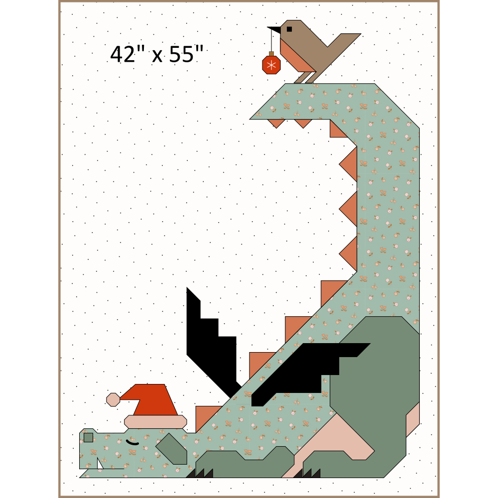 This quilt kit is for a crib quilt made by combining several patterns: Dragon Dreams with the free Santa hat add-on and Little Robin.