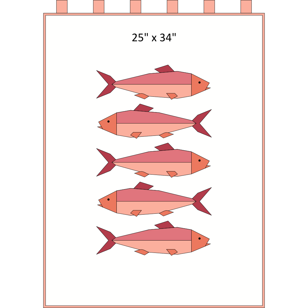 This quilt kit is for a 25″ x 34″ Sardines mini quilt as shown in the mock-up.