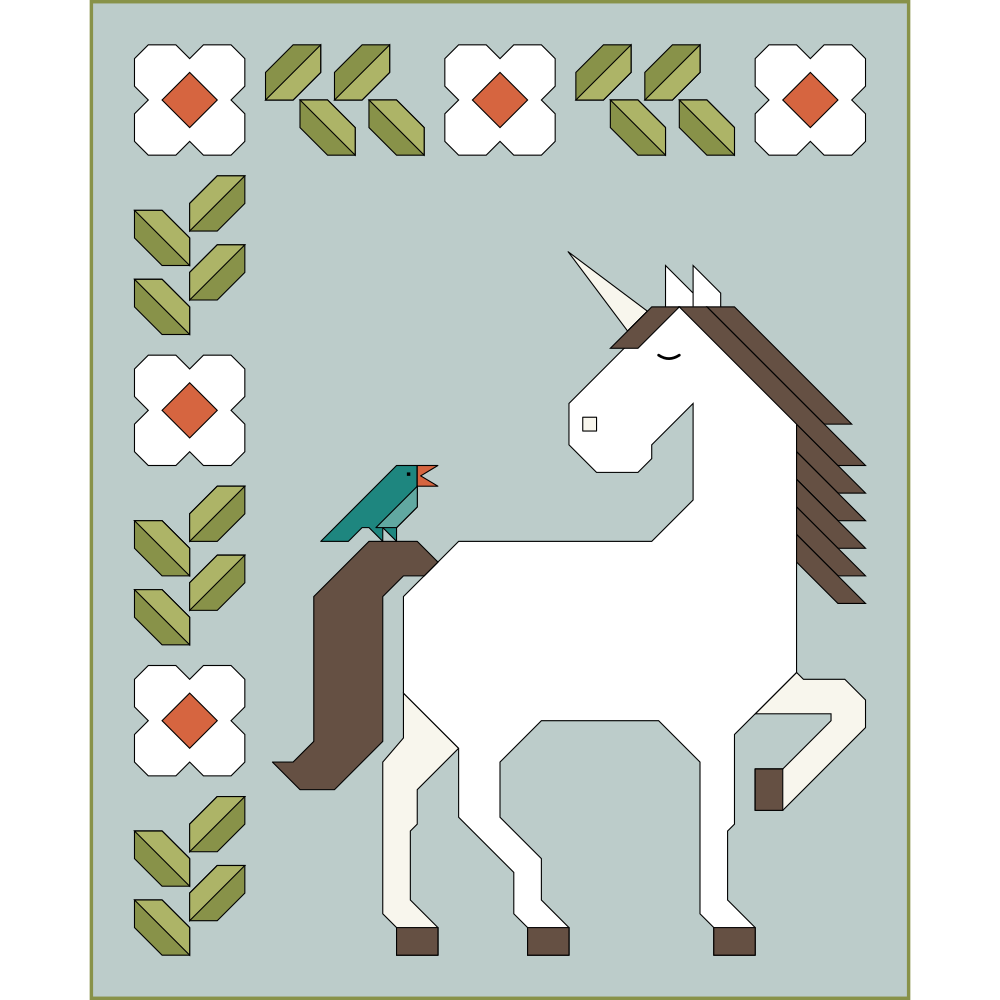 (The bird detail is optional, you can also make a regular Unicorn Garden quilt.)